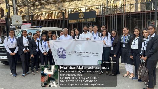 As part of experiential learning, Lala Lajpatrai College of Law organized several field visits during the academic year 2024–25 to provide students with practical exposure to the legal system. On 2nd January 2025, students visited the District Legal Services Authority to understand its role in ensuring access to justice. This was followed by a visit to Agripada Police Station on 6th January to observe police procedures and FIR registration. On 10th and 13th February, visits were organized to the National Company Law Tribunal (NCLT) and the Bombay High Court, where students observed live court proceedings. A significant learning experience was the visit to Byculla and Arthur Road Jails on 22nd February to understand the prison system. Students also visited the Family Court on 13th March and Mazgaon Court on 31st March to gain insights into civil and family law matters. Additionally, on 4th February, students visited the Forensic Medicine Department at Nair Hospital, where they learned about the role of forensic science in criminal investigations. These visits greatly enhanced students’ understanding of the practical aspects of law and the functioning of various legal institutions.